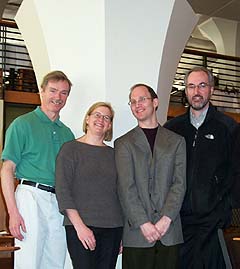 Photo by Clair Enlow Chris Larson, Ann Yoder, Rick Yoder and Randy Benedict near one of the mushroom columns inside Wild Ginger. |
