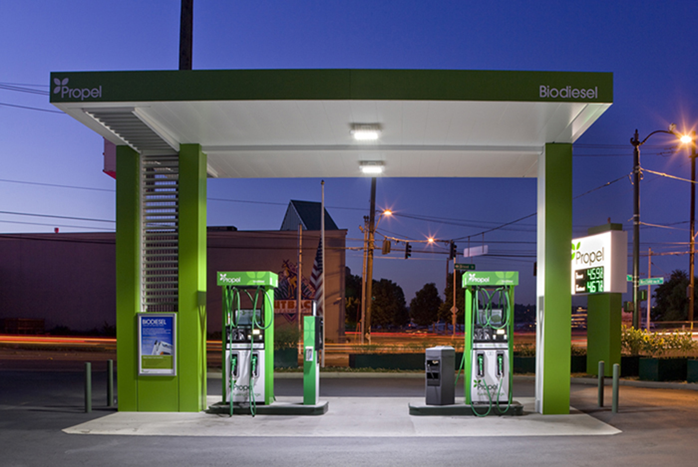 If you're green at heart but still attached to your internal combustion engine, don't give up hope. If it's diesel you need, pull your Bug or your tractor-trailer into the South Lake Union station at Broad and Westlake and fill up. It's roughly the same price per gallon as regular diesel.