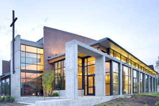 “Through massing and materials, the project is respectful of the context without pandering to sentimentality or resorting to the easy use of the icons of religious architecture.” “The sanctuary has a warmth derived from the lighting and materials.”
