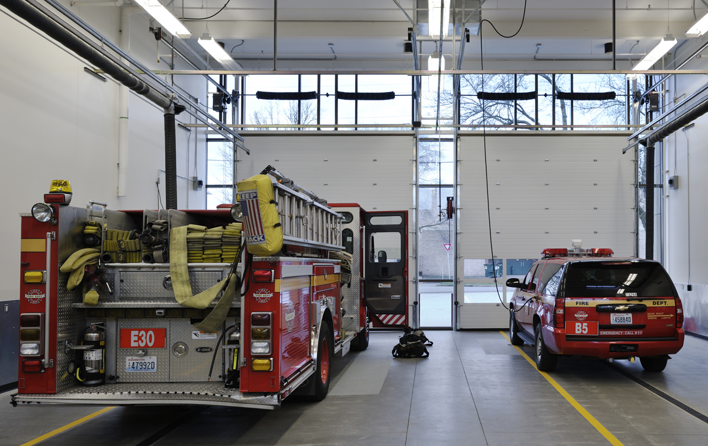 The program for fire stations tends to divide the plan in two. There's the “house” side, where personnel spend their time at desks, at meals, at rest or — increasingly — working out. Then there is the “apparatus” side, where the trucks and all the trappings of fire fighting are stored and prepared for deployment through the large garage doors.