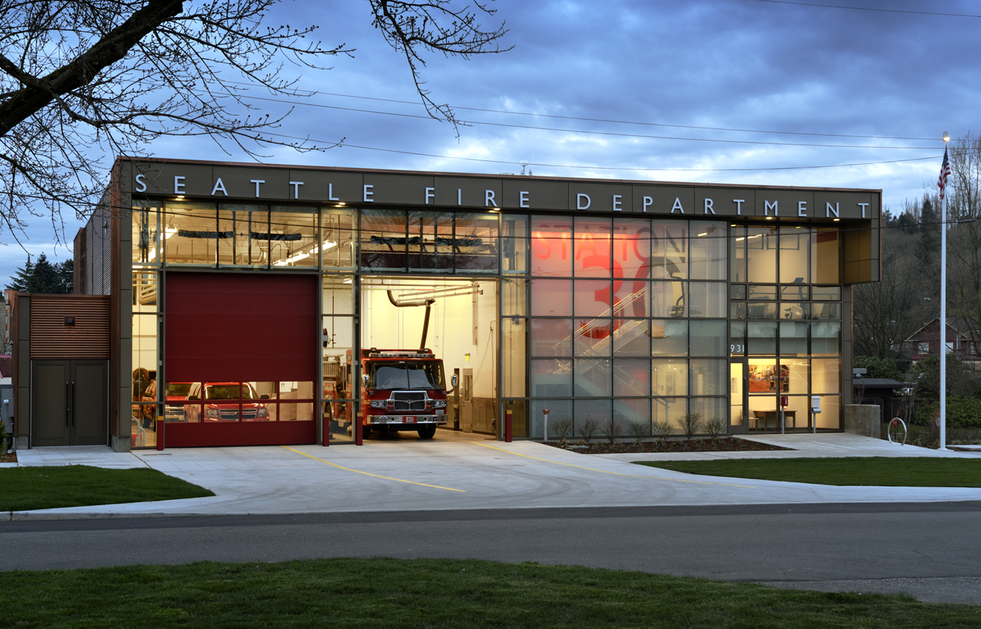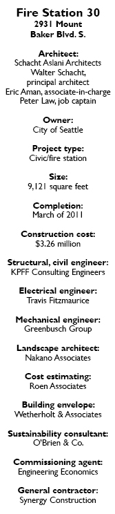 Fire Station 30 replaces a low-lying, nondescript station built in 1949. It is one of 32 neighborhood fire station projects funded by a levy Seattle voters passed in 2003, according to David Kunselman, the city's fire levy program manager. Most are renovations of existing buildings. Trucks are larger, and stations need to deal with new contingencies like biohazards and decontamination.