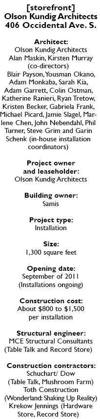 Virtually all interns at Olson Kundig have heard of [storefront], said Maskin. Since [storefront] opened, Olson Kundig has grown to 96 employees, the largest ever.