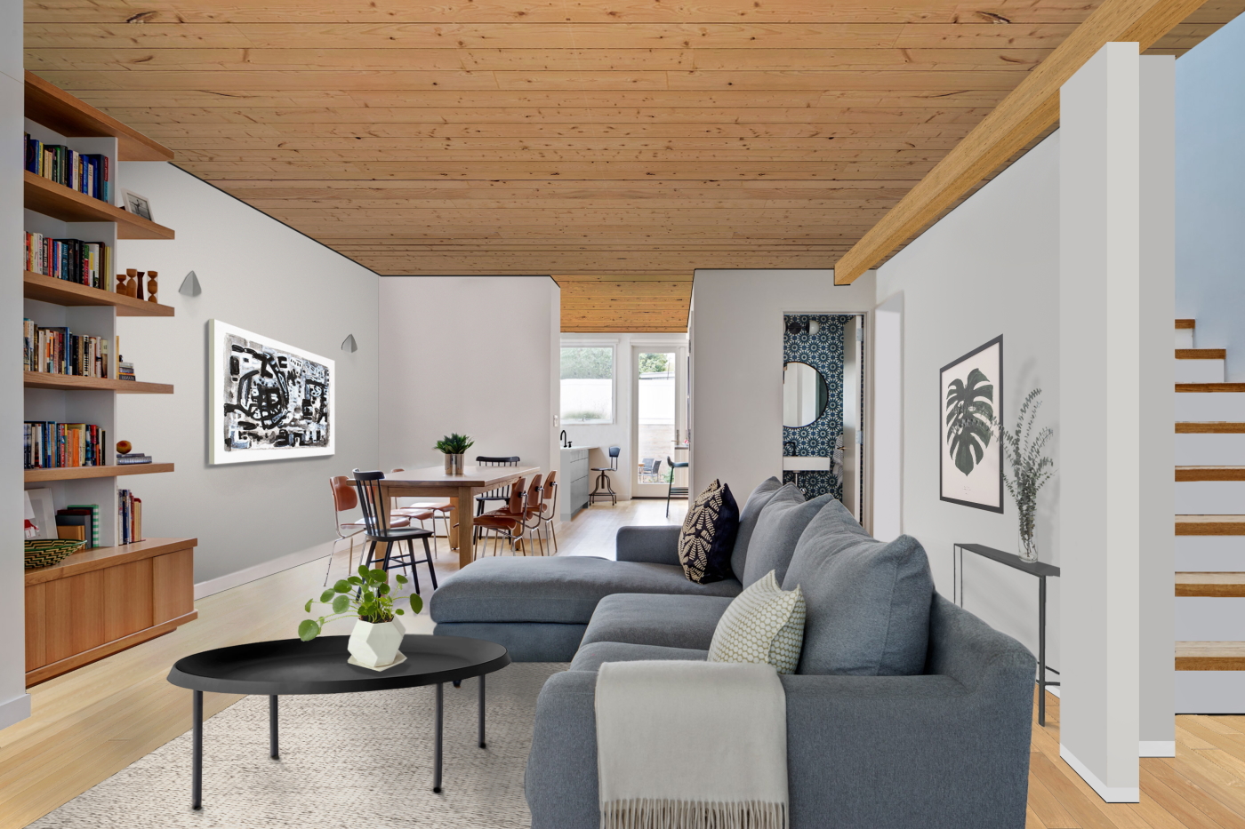 The interiors of the townhomes have CLT floors and ceilings, which were manufactured off site.