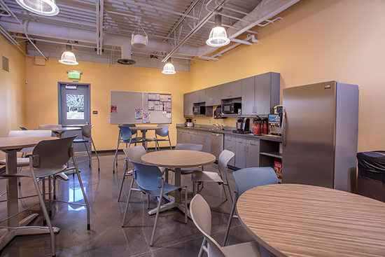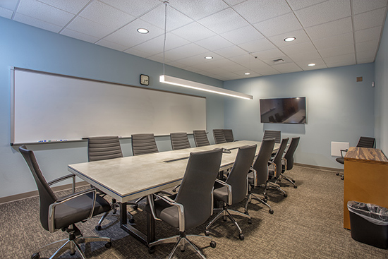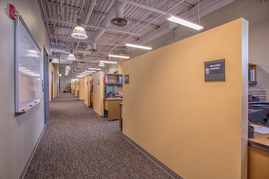 An open office design, common with small firms and corporations, was used to create a more efficient layout.