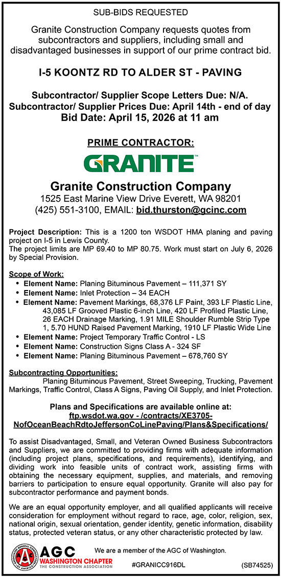 | I-5 KOONTZ RD TO ALDER ST - PAVING Granite Construction Company |