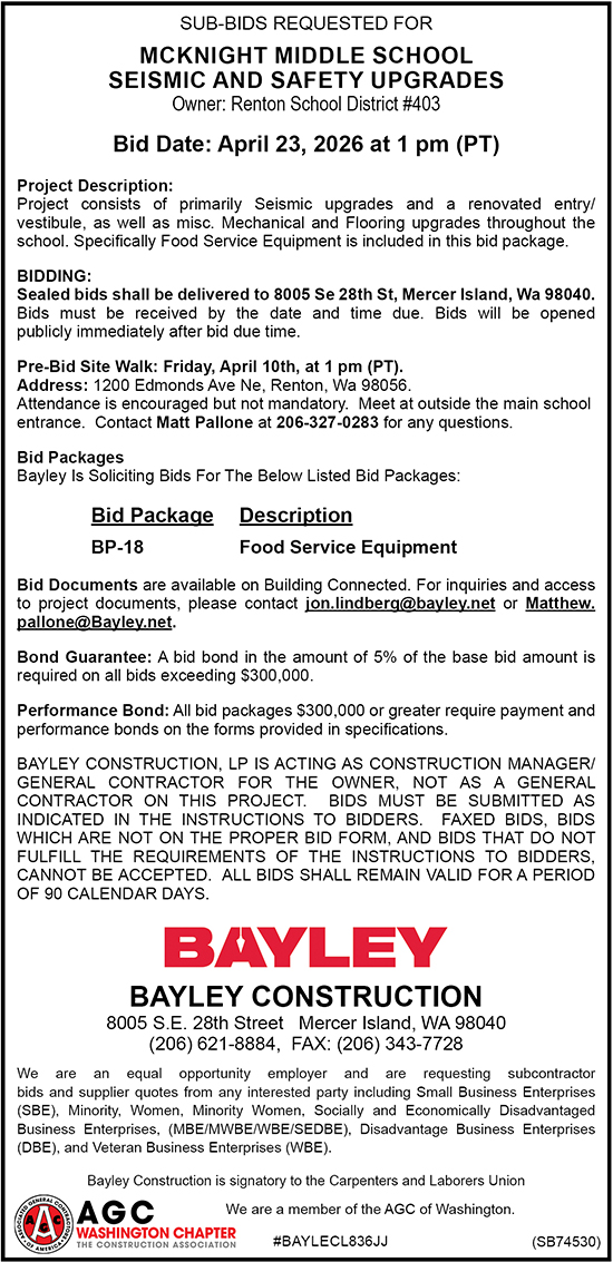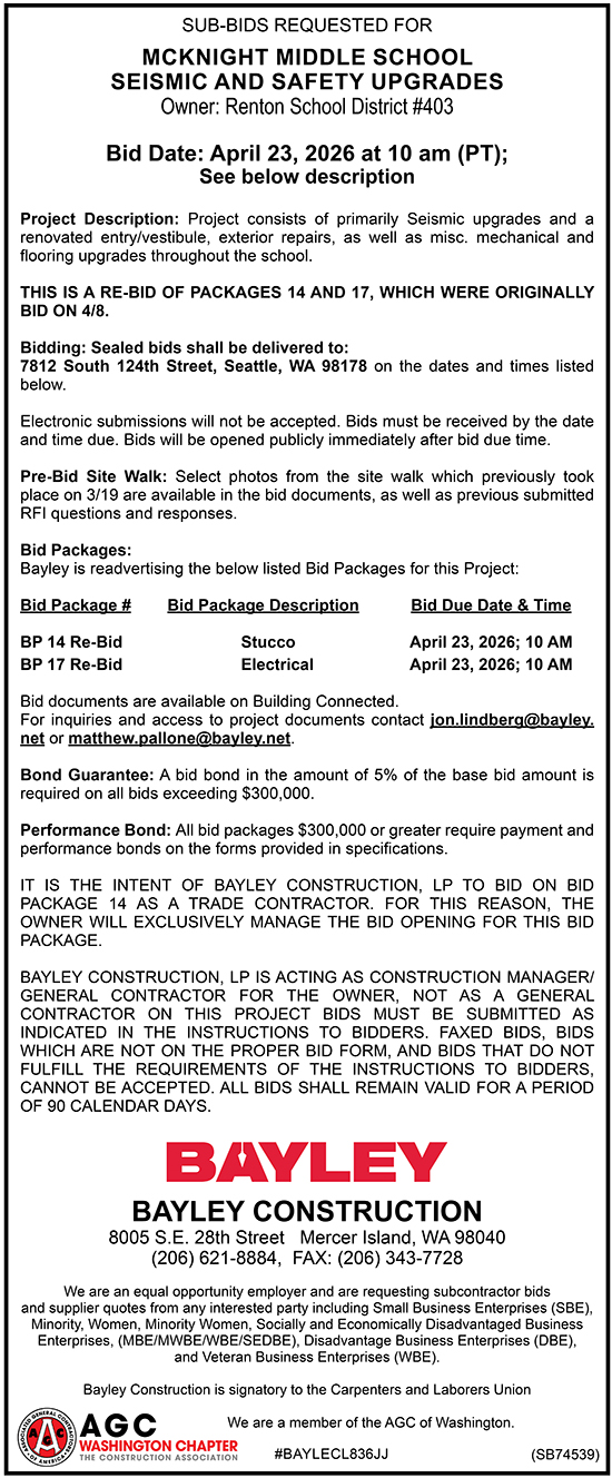 | MCKNIGHT MIDDLE SCHOOL SEISMIC AND SAFETY UPGRADES, BP 14 & 17 RE-BID Bayley Construction |