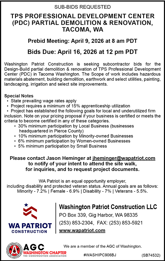 | TPS PROFESSIONAL DEVELOPMENT CENTER (PDC) PARTIAL DEMOLITION & RENOVATION, TACOMA, WA Washington Patriot Construction LLC |