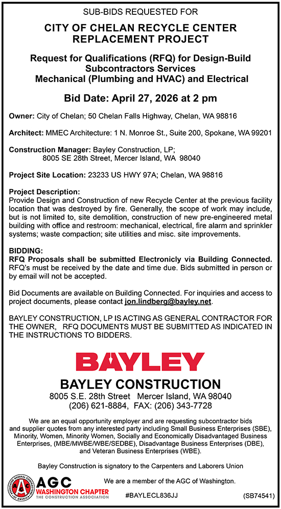 | CITY OF CHELAN RECYCLE CENTER REPLACEMENT PROJECT - RFQ Bayley Construction |