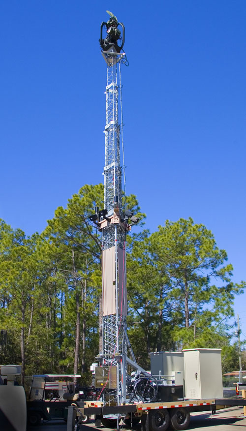The first integrated mobile sensor tower was tested in Fort Walton Beach, Fla. Nine of the towers have been installed near the border town of Sasabe, Ariz.