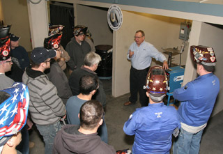 Neal Borchert of Miller Welding addresses the first Veterans in Piping class, which ended earlier this month.
