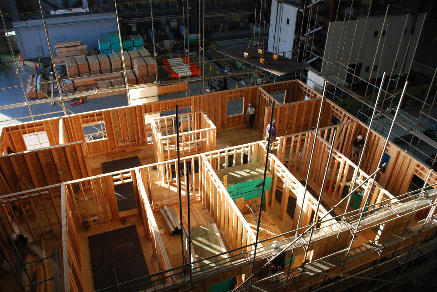 Construction is under way in Japan on the largest building ever tested on an earthquake shake table. Steel plates, each weighing 1.8 tons, were installed recently on the second story of the wood-frame building. There will be eight plates on each of the building’s seven floors.