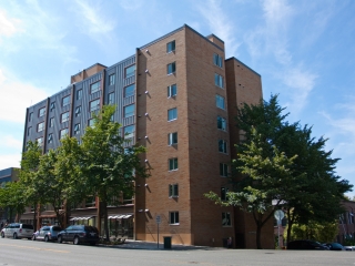 • The metal panels add texture while giving the former Sunset House apartments a contemporary look.