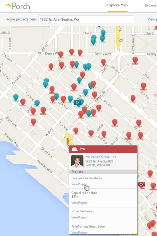 A user can enter their address and a Google-like map will show them who built projects in the area.