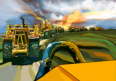 • Customers send photos of what they want to depict. Top subjects: heavy equipment, work crews and jobsites.