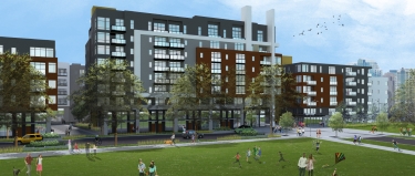 The Sparc will have five apartment buildings. But because it is taller than the adjacent apartments, the nine-story light-gauge steel building will be the only one of its kind in the development.