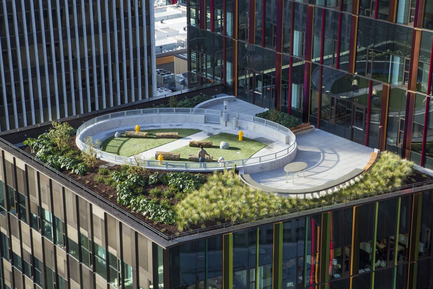 Columbia Green Technologies is a supplier of materials for green roofs and worked with SiteWorkshop on the Amazon campus green roofs project. Along with the green roofs, the project includes a dog park on the Doppler Building's 17th floor.