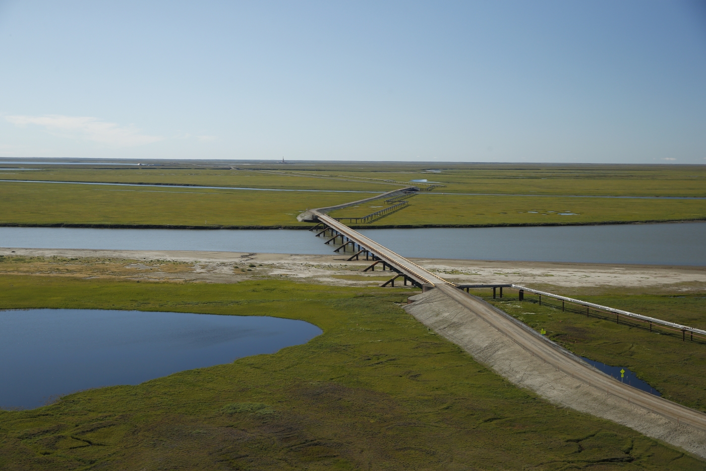 Kenton Braun, vice president of PND Engineers in Houston, said the “extreme environment” presented unusual challenges, and planners also faced a complicated seven-year permitting process. Braun was the engineer of record on the bridge and his firm provided technical design and assistance during construction.
