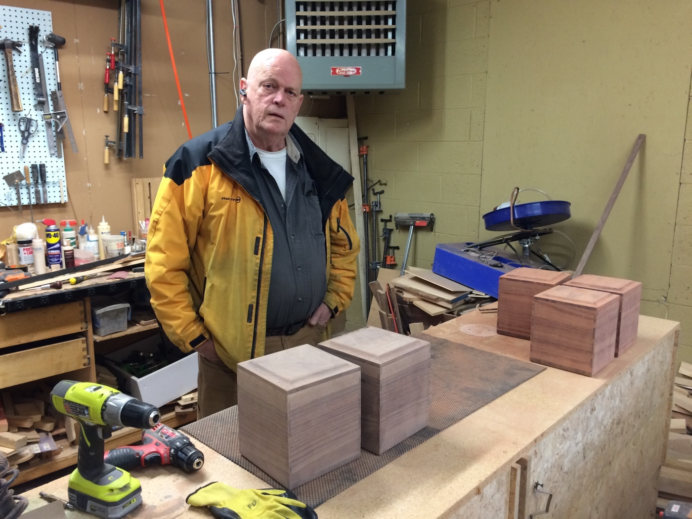 Danny Minor hand-crafted these wood urns for a funeral home.