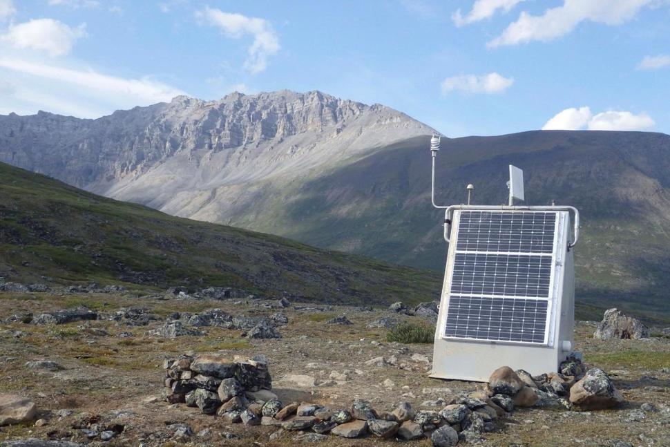 This seismic station at Anaktuvak Pass in Alaska sends out earthquake information in real time. A seismometer rests at the bottom of a borehole and a fiberglass hut protects it and other equipment.