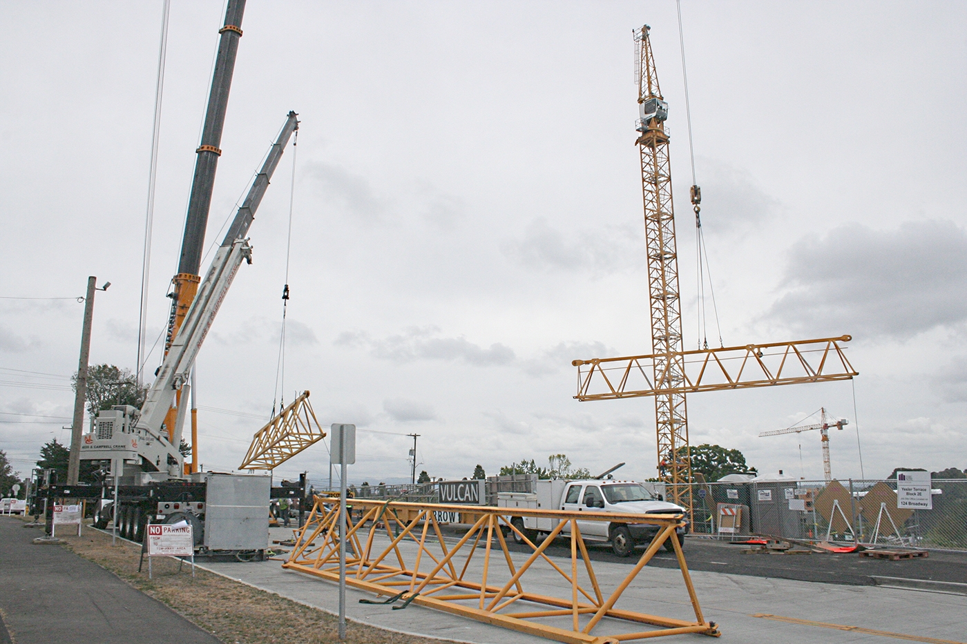 The tower crane will arrive on site in multiple parts.
