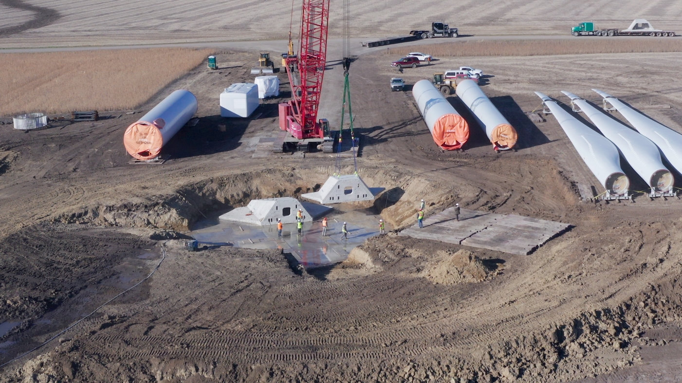 Contractors last fall installed a 295-foot-tall wind turbine in Minnesota using a precast modular foundation.