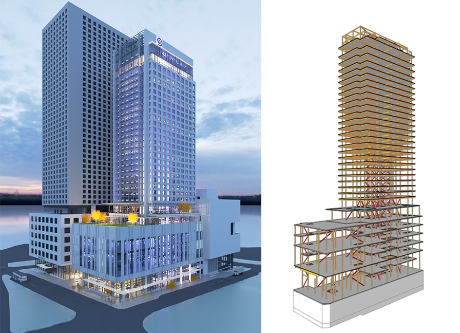 One of the keys to building the hotel as quickly as possible, he said, is CKC's use of buckling restrained braces around the central core. The buckling restrained braces will work in concert with outrigger frames at strategic locations — using fluid viscous dampers that Whiteley said will “act like shock absorbers.”
