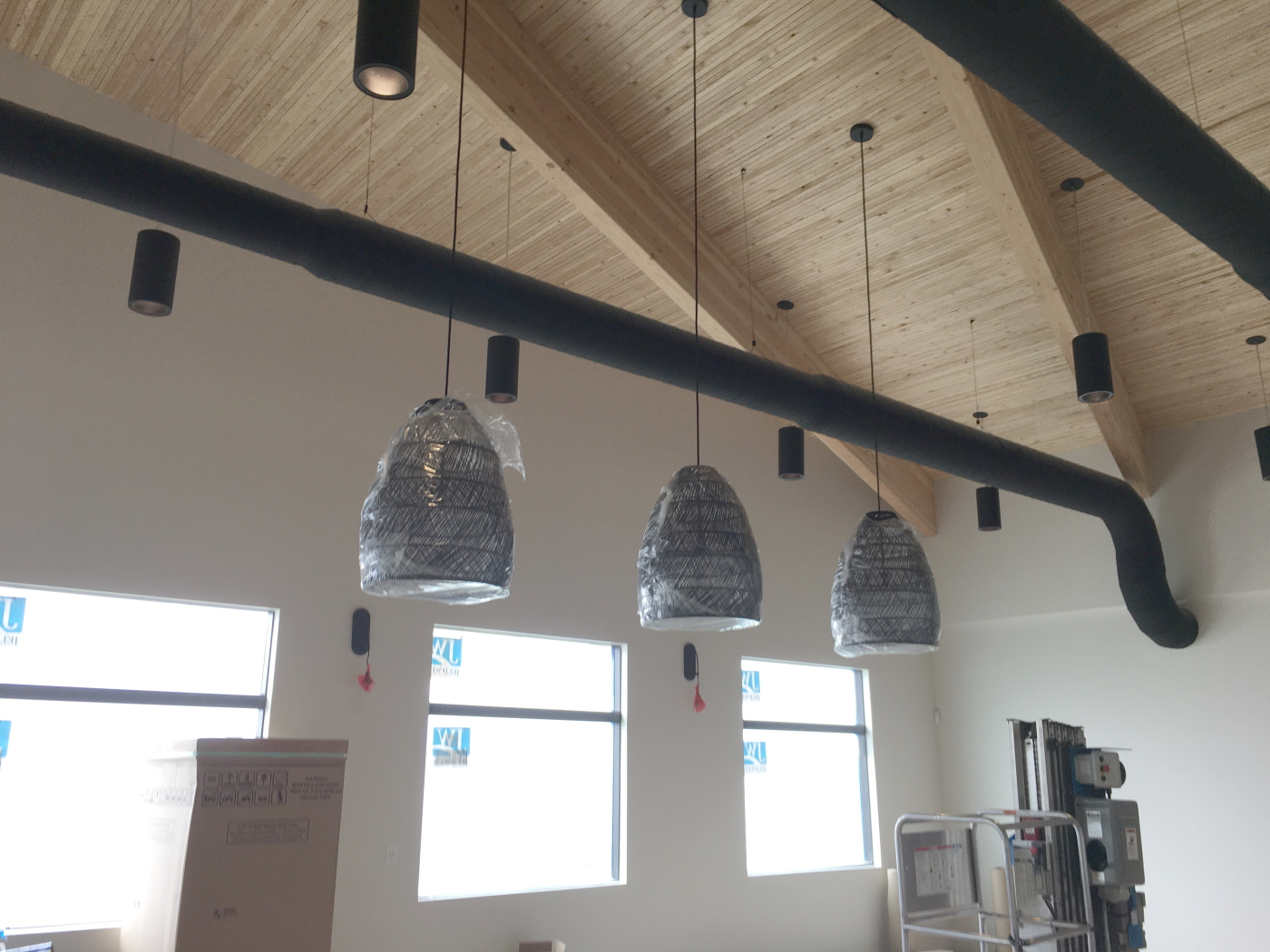Workers recently installed NLT panels for the roof of the new I&E Construction headquarters in Oregon.