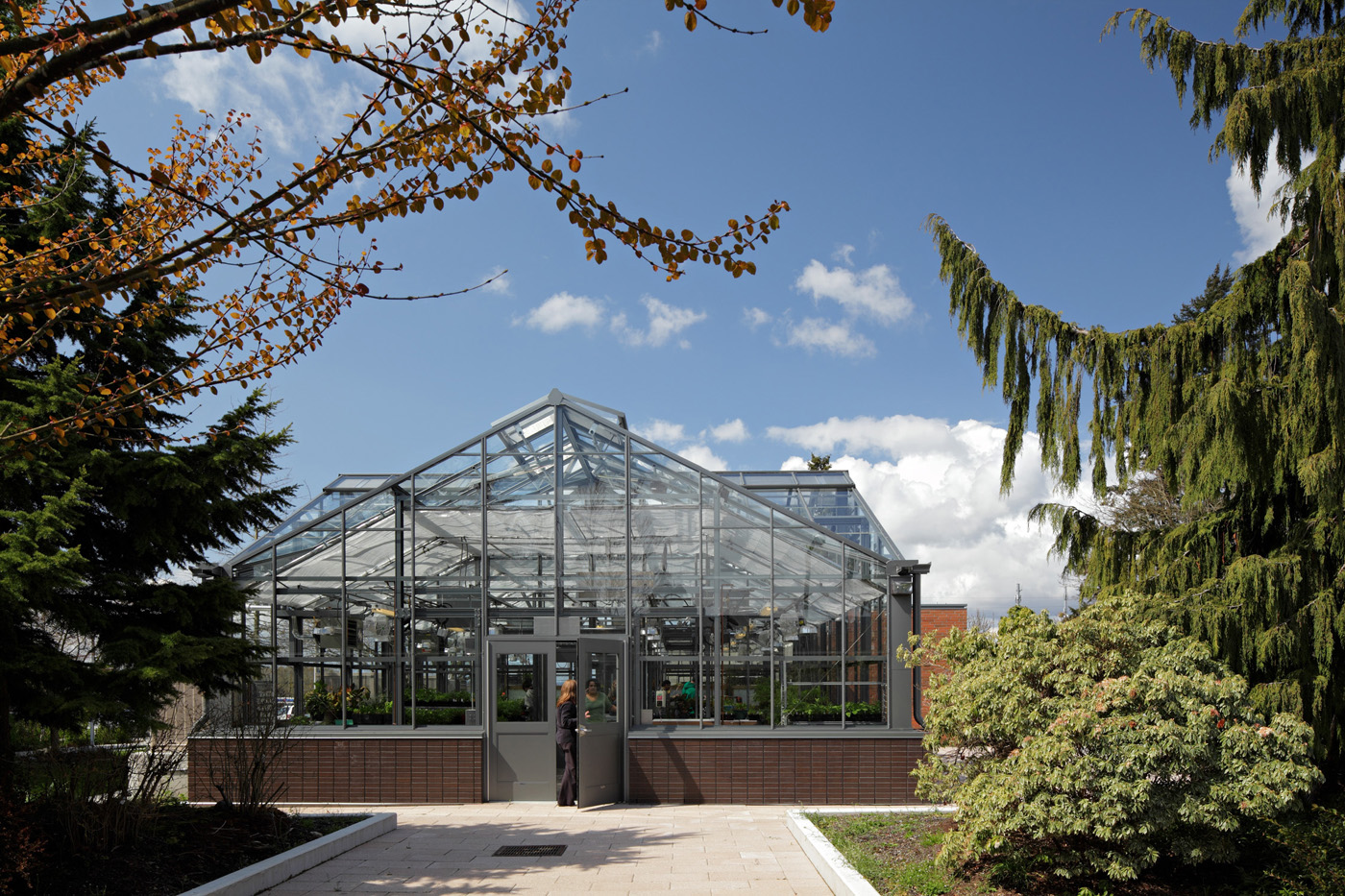 Skagit Valley College's new 1,800-square-foot greenhouse is located at an entrance to the Mount Vernon campus, near the Laura Angst Hall science building.
