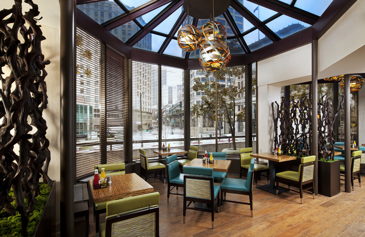 The restaurant and bar offers re-invented American cuisine. It is open daily from 6:30 a.m. to 11 p.m.