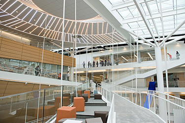 Rather than divide the space among the universities by floor, labs are integrated and classrooms shared. It is designed to encourage interaction among the universities’ faculty, graduates and undergraduates, from shared labs with special instruments to shared office space.