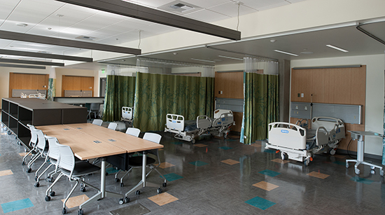 Many of the learning spaces were designed to mirror a professional hospital setting. Two dedicated skills labs have 20 hospital beds and a five-room medical simulation lab.