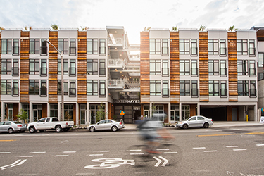 It has 65 units that range from studios to two-bedroom townhouses with two levels. Four live-work spaces face Dexter. Rents range from $1,905 to $3,379.