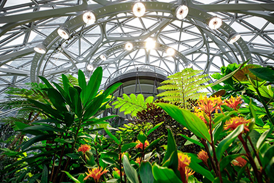 The glass conservatory domes are filled with more than 40,000 individual plants, from more than 50 countries.