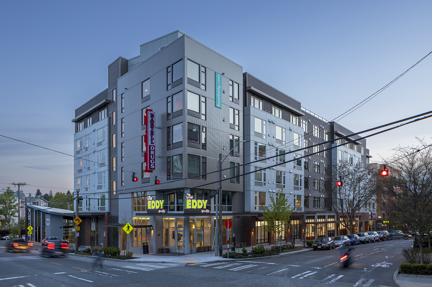 The Eddy at Green Lake Village is a 130-unit apartment building with street-level retail at 419 N.E. 71st St. in Seattle's Green Lake neighborhood.