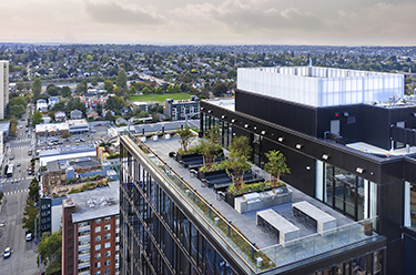 The M is a 24-story luxury student housing tower at 4700 Brooklyn Ave. N.E., near the University of Washington. It is the first tower in the University District since the former Safeco Tower, now owned by the UW, was built in the 1970s.