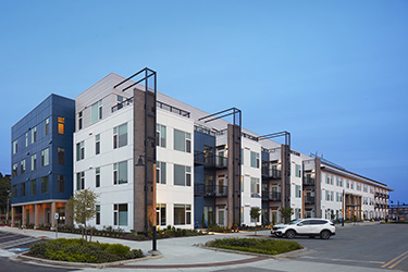 The Carling is a two-building 130-unit apartment project at 1400 W. Marine View Drive, part of the Waterfront Place development in Everett.
