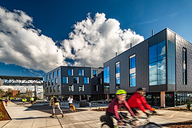 Northlake Commons is a new mixed-use development that has reimagined a former industrial site near the shore of Lake Union, abutting the Burke-Gilman Trail.