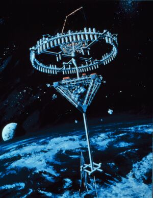 A proposed orbital hotel (1989), on display at the Museum of Flight.