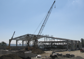 Lydig Construction crews are installing the main girders of the high-bay section of the new Bow Lake Recycling and Transfer Station adjacent to Interstate 5 in Tukwila. The project's construction costs are about $43 million.