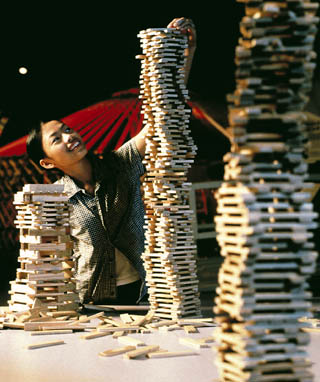 Visitors to Pacific Science Center's ‘Raise the Roof' exhibit can try their hands at construction with Kapla blocks.
