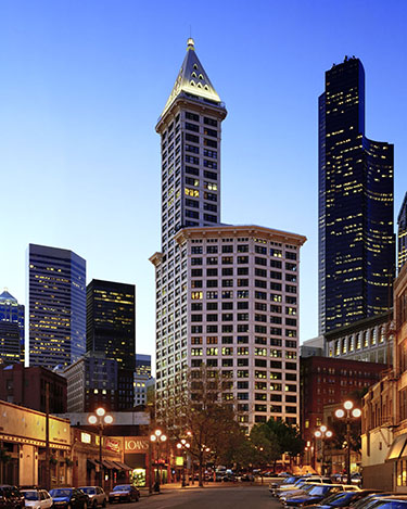 Smith Tower was the tallest building on the West Coast until the Space Needle was erected in 1962. It cost $1.5 million to build and was named for New York tycoon Lyman Cornelius Smith, who in 1914 owned $4 million worth of property in Seattle.