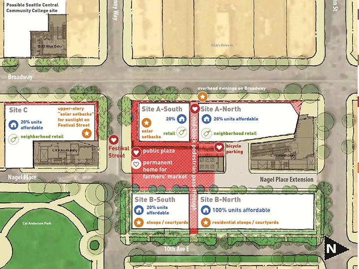 A minimum of 397 apartments could be built on the four sites, which are on or near Broadway, between East John Street and Seattle Central College. At least 36 percent of the units must be reserved for lower income people.