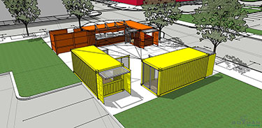 The other two containers will house retail, with steel doors and eight-foot hinged store windows that are easy to open.