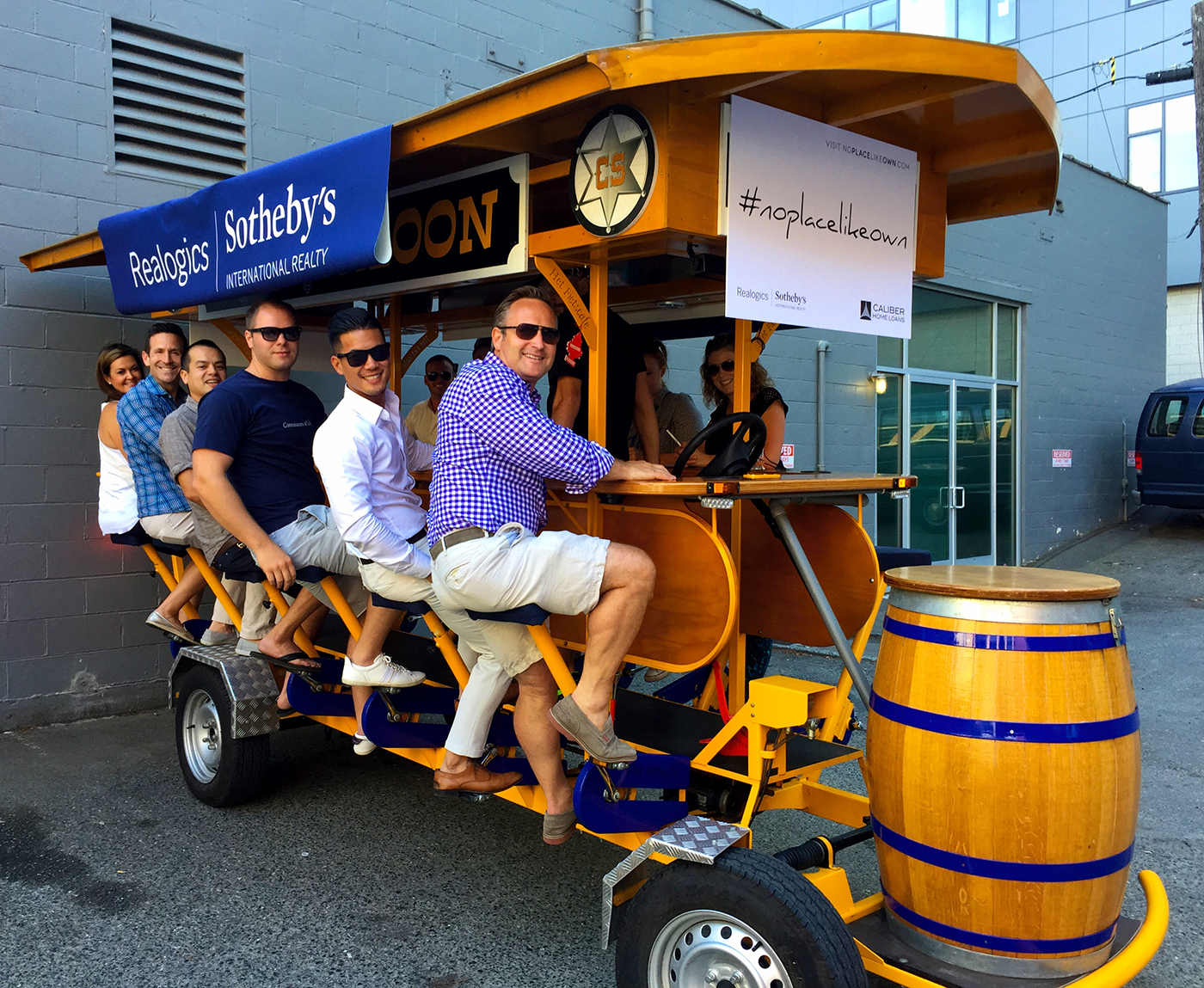 Real estate brokerages are trying new ways to get the attention of Seattle's young tech workers, including using a Cycle Saloon, the pedal-powered mobile bar that darts around Fremont and Ballard.