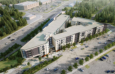 Alexan Shoreline will also have 302 parking stalls (structured and below-grade) and 198 bike stalls. About 66 of the 330 units will be affordable, under the city's 12-year tax exemption program. The two-acre property is also bounded by the Interurban Trail and Aurora to the east, and by North 155th Street to the south.