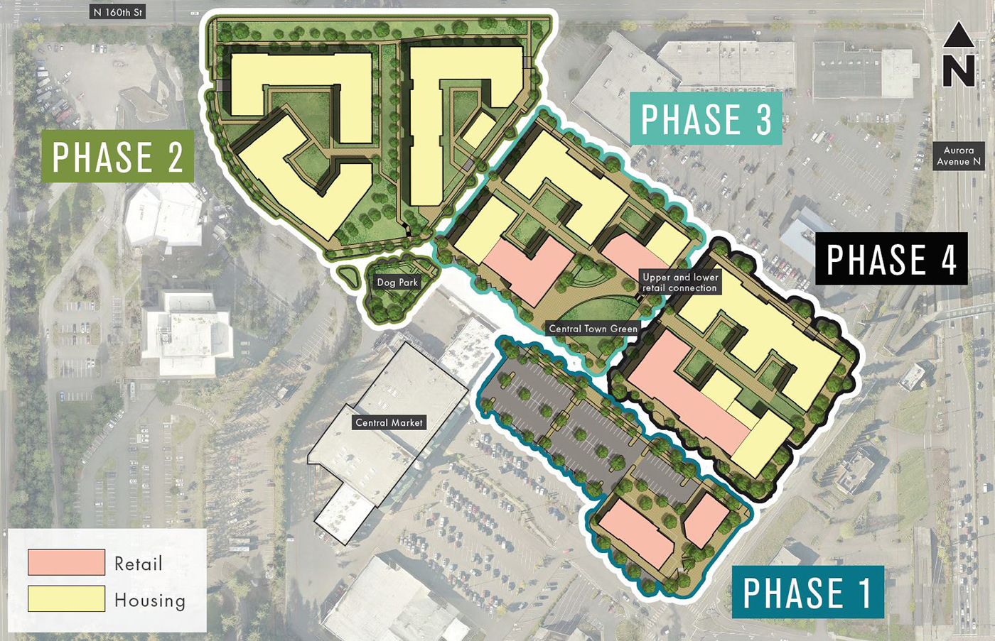 That roughly 70-acre trapezoid had been anchored since 1967 by the Sears at 15711 Aurora Ave. N. But the recession, rise of Amazon and retail apocalypse all led the city toward an optimistic mixed-use redevelopment vision: a new urban village, also to be called Aurora Square.