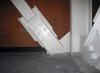 Alaska Airlines’ SeaTac-based maintenance facility is critical to the airline’s regional and national operations. Crews use the facility to maintain and repair the airline’s aircraft fleet so departures around the nation are not delayed. After the 2001 Nisqually earthquake, the airline commissioned a seismic screening and evaluation study of the building to ensure it would remain functional after the next major earthquake. The airline decided to go ahead with a seismic upgrade, but the facility had to remain open throughout the project. Typically during an earthquake, the energy generated in a building is dissipated through the yielding of braced or moment frames, or the yielding of reinforced steel in shear walls. But these methods of dissipating energy can cause significant damage to structures. So the structural engineer, Reid Middleton, designed a system using energy-dissipating seismic friction dampers — a series of plates tightly clamped together that absorb earthquake energy by rubbing together and generating heat, much like the brakes on a car dissipate energy in the form of heat. The dampers allow a building to move only in specific locations, dissipating energy through friction in the damper rather than damaging the rest of the building. This approach extends the useful life of the building, reduces its overall life-cycle costs and reduces the demand for natural resources that would be required to build new structures. The dampers were placed where they could be installed quickly, minimizing the interruption to the building occupants.