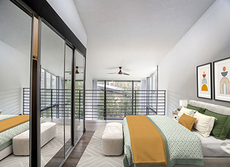 Exposed original timber beams and wood decking celebrate the Westland Building's industrial heritage while bringing natural warmth and biophilic character to the hotel interior.